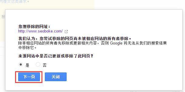 点击请求移除,下面就可以看到自己的申请记录了,等待谷歌更新即可